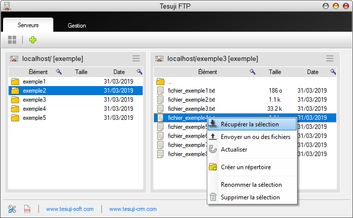 Il affiche dans un tableau de bord personnalisable les divers serveurs FTP auxquels vous désirez vous connecter et propose les fonctions FTP classiques : envois et réceptions de fichiers, création de répertoires, renommage et suppression de fichiers ou de répertoires.